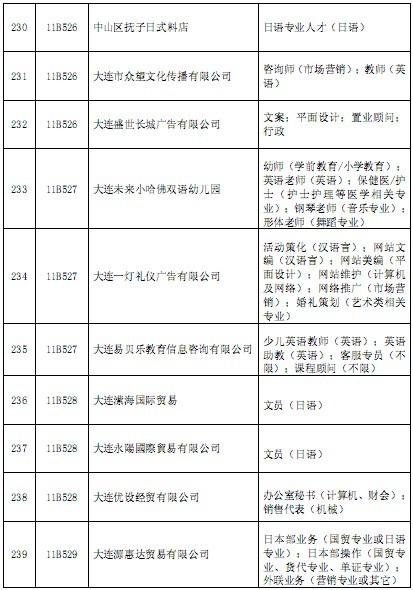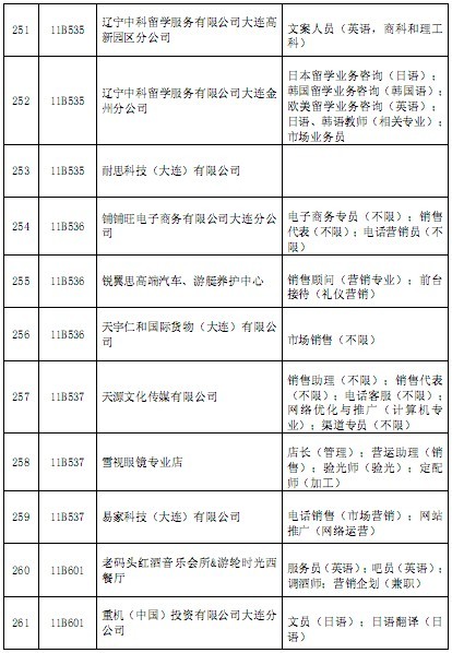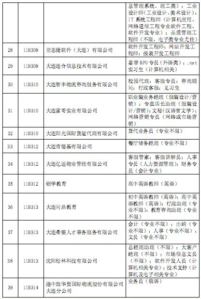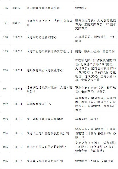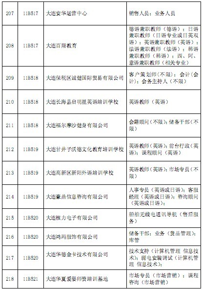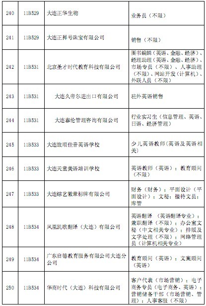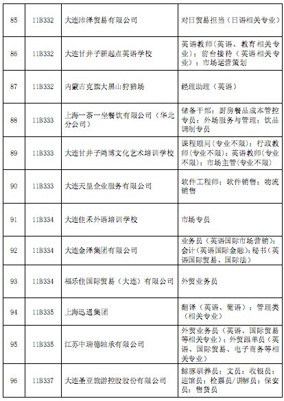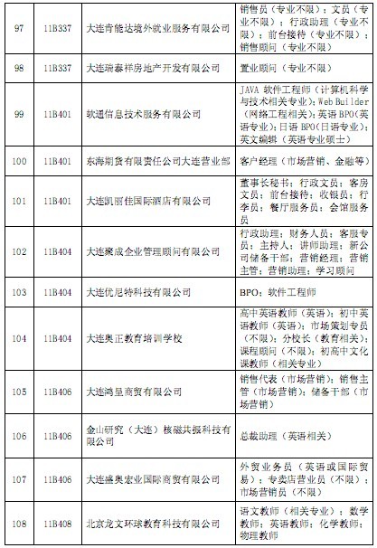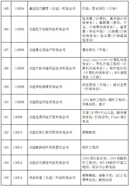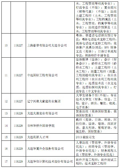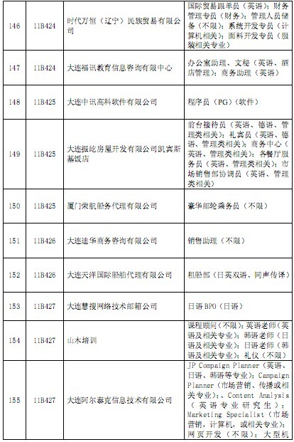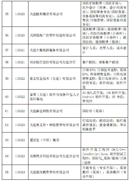大连外国语学院 2013 届毕业生大型招聘会单位汇总
