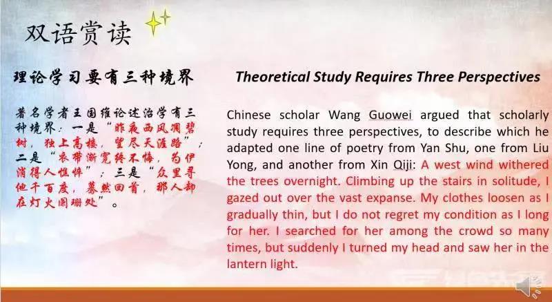 此次系列双语思政微课堂由教工第二党支部书记曲涛,2019级研究生党支部书记蒋瑞函以及研究生辅导员黄新智共同策划,由一名教师党员对接一名研究生党员负责《之江新语》中一篇讲话文章的双语微课堂录制,包括文字和音频。每一讲分为讲话时代背景、学习体会、翻译解析、双语赏读、学后小结等5个模块,秉承专业学习与思政建设相结合的理念,将专业知识融入到党建活动中,为思政教育注入新鲜血液,开辟了全新的党建活动模式;同时,党建创新活动又为学生学习专业知识提供了正确的价值导向,推动教育教学朝着正确的发展方向稳步迈进。党建与专业教学相融合,是新时代赋予我们的使命。同学们应始终坚持党的领导,紧跟党建步伐,在学好专业知识的同时,争做优秀的社会主义建设者和接班人。