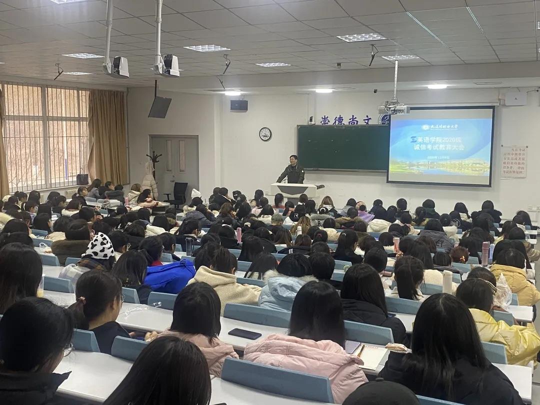 苏联作家高尔基曾说过:“诚信是人生永远最美好的品格。”期末考试来临之际,为更好地帮助20级新生同学们规范自身行为,诚信应考,12月9日下午我院在明德楼举办了2020级诚信考试教育大会。本次大会由辅导员王艺凝主持,学院副院长曲涛主讲,2020级全体学生参加了本次大会。
