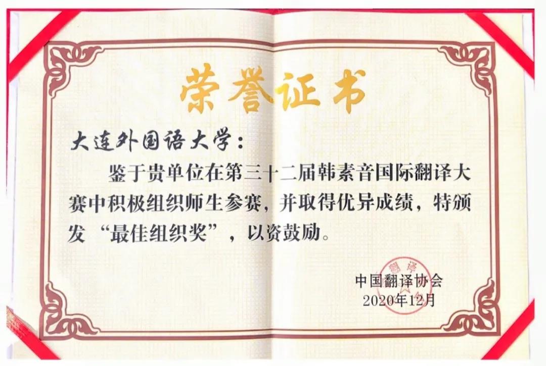 本次大赛由中国外文局所属中国翻译协会与四川外国语大学联合主办,《中国翻译》编辑部与四川外国语大学翻译学院联合承办。四川外国语大学副校长祝朝伟作大赛评审工作报告。据悉,2021年第三十三届韩素音国际翻译大赛将由中国翻译协会和北京第二外国语学院联合主办。下一届大赛将从英语、法语、俄语、西班牙语、阿拉伯语5个语种拓展至英语、法语、俄语、西班牙语、阿拉伯语、德语、日语和韩语8个语种翻译竞赛项目。