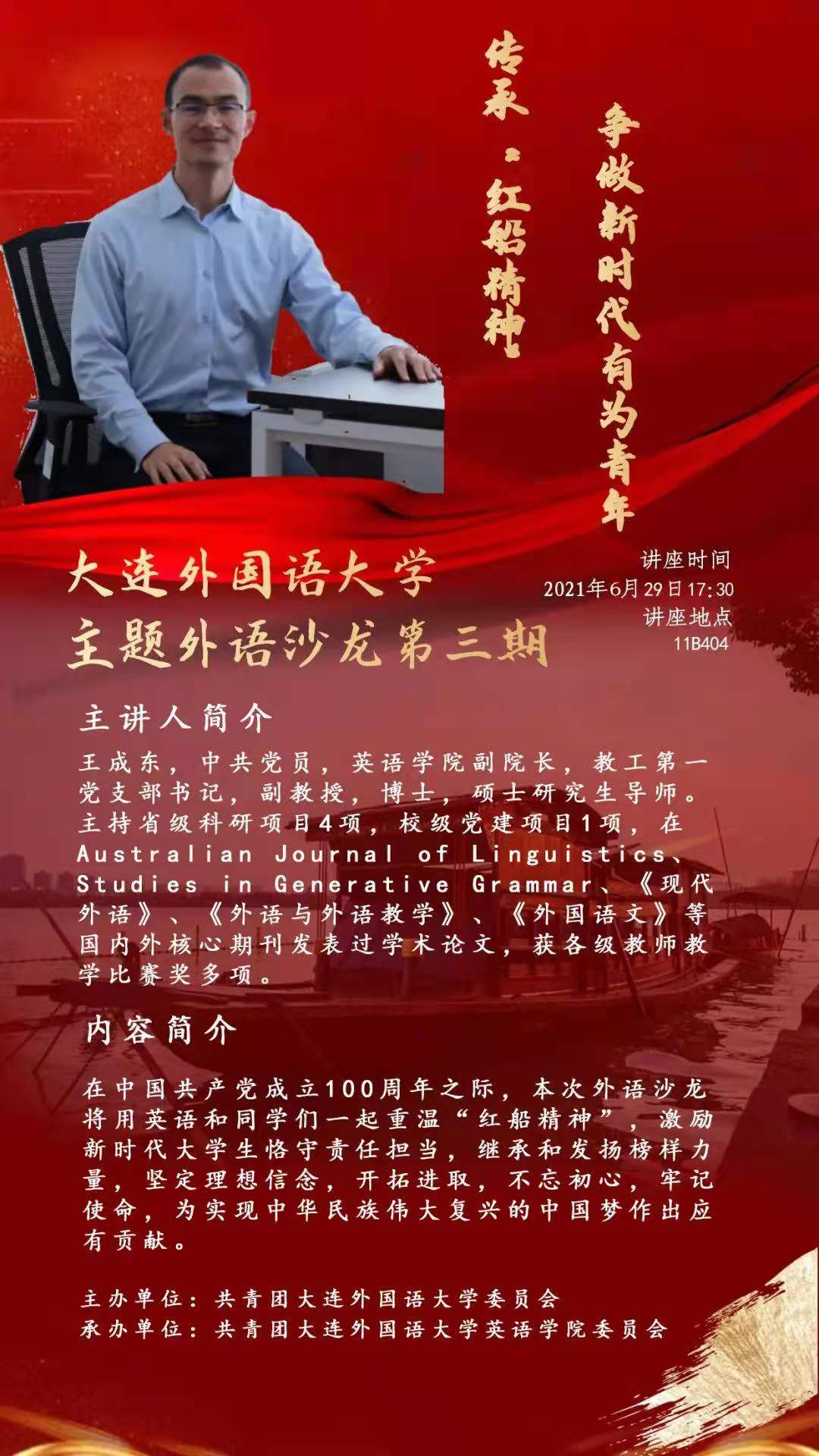 副院长王成东老师,带领同学们用英语重温“红船精神”,围绕此进行讨论与分享。