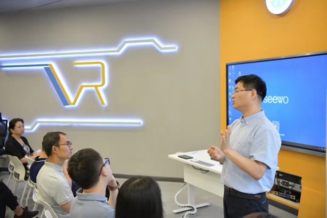 在VR实验室召开2020-2021学年第二学期本科教学工作会议。会议主题为:“新文科背景下一流英语专业建设和人才培养模式”。学院领导班子成员、全体专任教师、辅导员和行政人员出席了会议。会议由副院长曲涛主持。