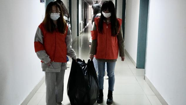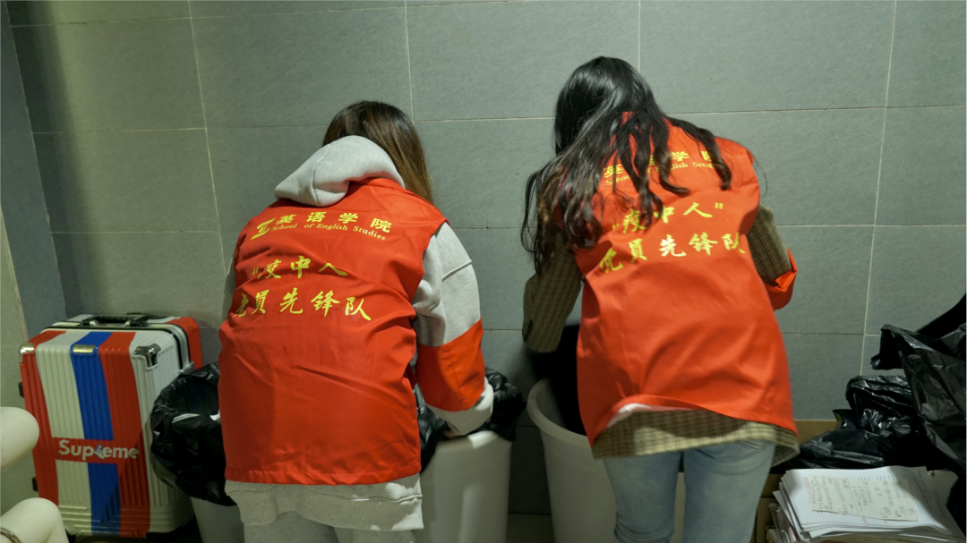 宿舍环保工作中,党员先锋队和青年突击队的队员们全面深入各个学生寝室,重点关注了各寝室楼是否存在卫生不良情况,号召同学们将个人的垃圾袋整理妥当,避免垃圾倾倒外泄,污染寝室楼生活环境;同时她们向同学倡议,将垃圾主动带出楼外,以减轻保洁阿姨搬运宿舍垃圾的负担。此外,据后勤工作人员介绍,清理宿舍楼外垃圾桶的任务量也十分繁重,经常会有外卖垃圾外泄、难以清理的情况。她们针对此类问题,建议同学们将外卖垃圾整理好,小心投入室外垃圾桶内。她们将会继续关注学生宿舍卫生问题,并及时为同学们与后勤工作人员提供支持与帮助。