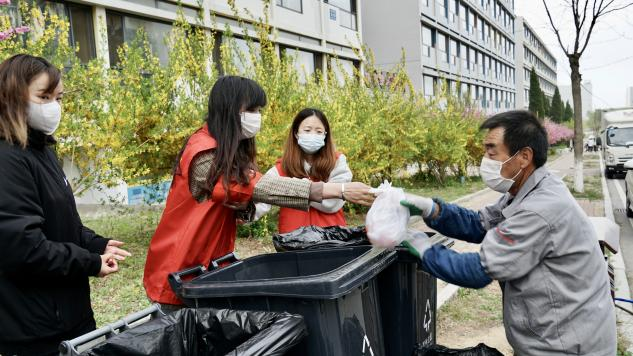 “疫中人”党员先锋队联合青年突击队开展宿舍环保工作,每日分区服务宿舍楼,倡议同学们垃圾外带,文明生活。