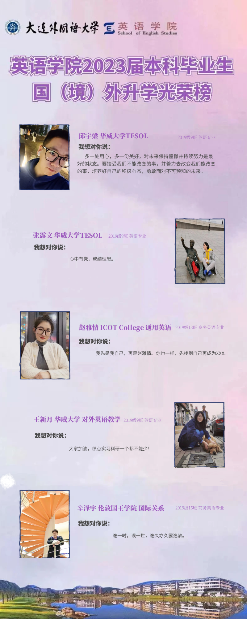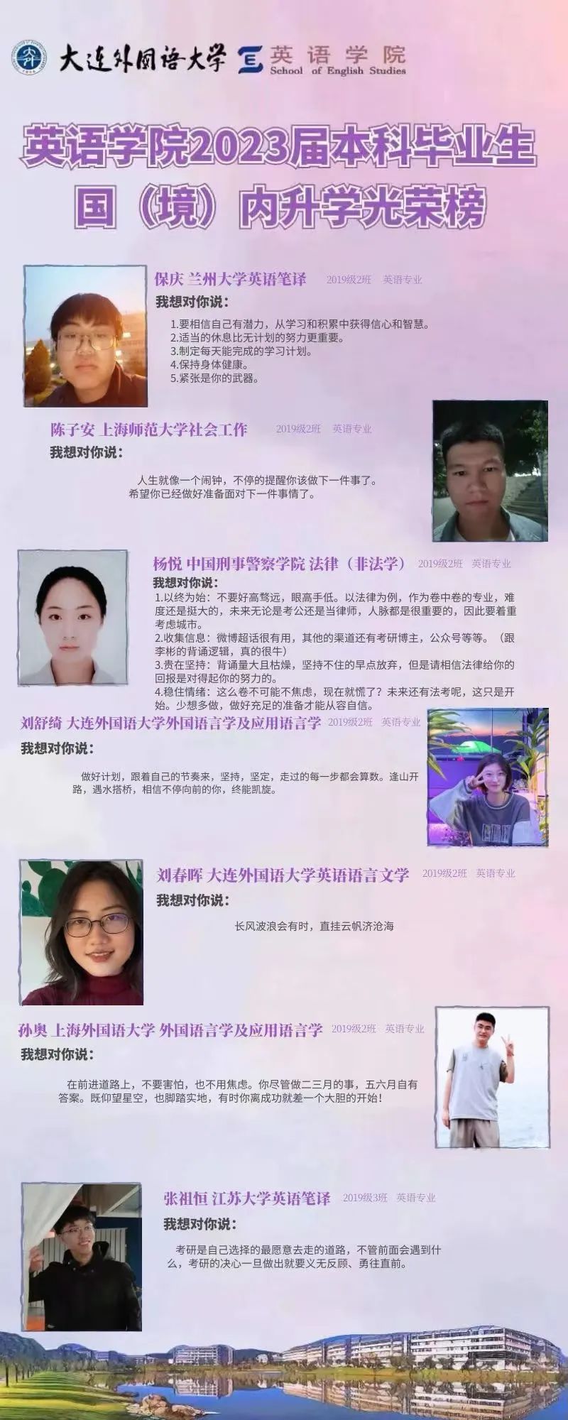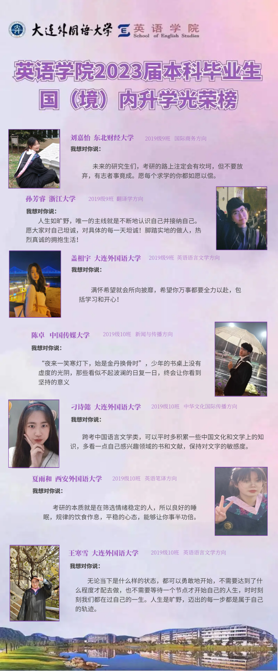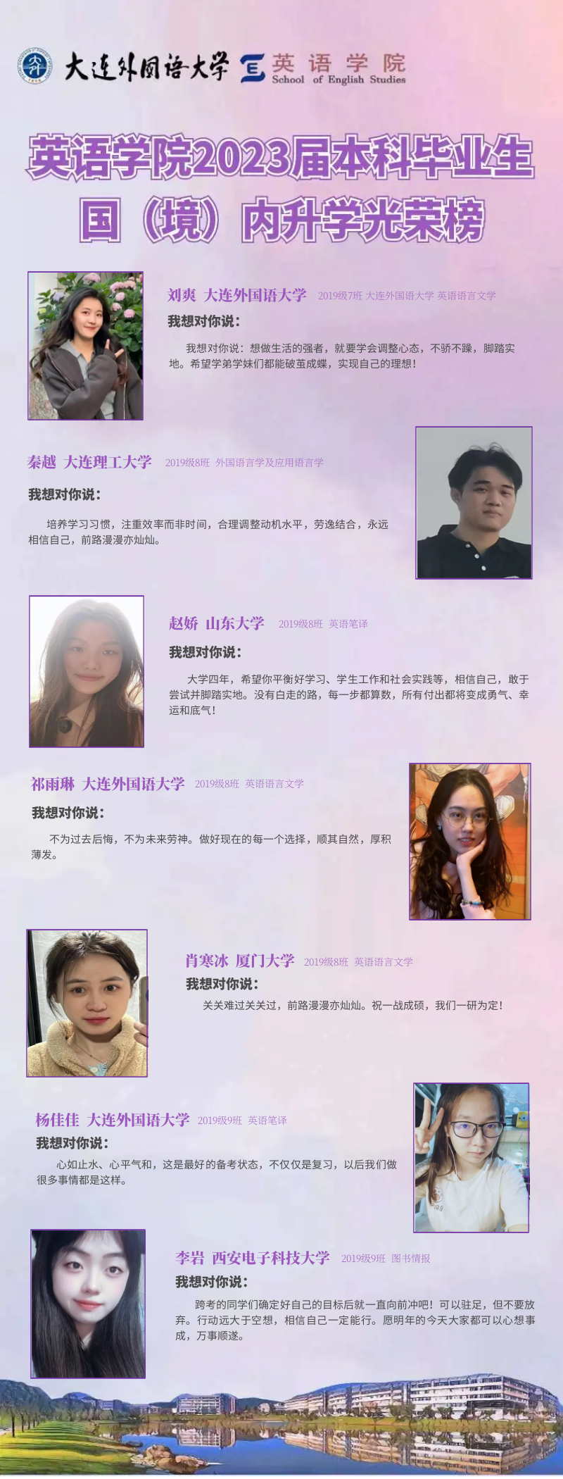 崇德尚文,理想信念肆意飞扬;兼收并蓄,道德智慧闪闪发光。衷心祝愿2023届毕业生学子们能在未来的旅途上坚持终身学习的优良品质,在顺应时代潮流的成才道路上继续披荆棘、破风浪,顺利到达理想的彼岸。与此同时,快猫短视频 的全体师生也将奋楫笃行,在为国家培养富有社会责任感、家国情怀和国际视野的创新型人才道路上驰而不息,持续为国家和社会输送高质量外语人才!