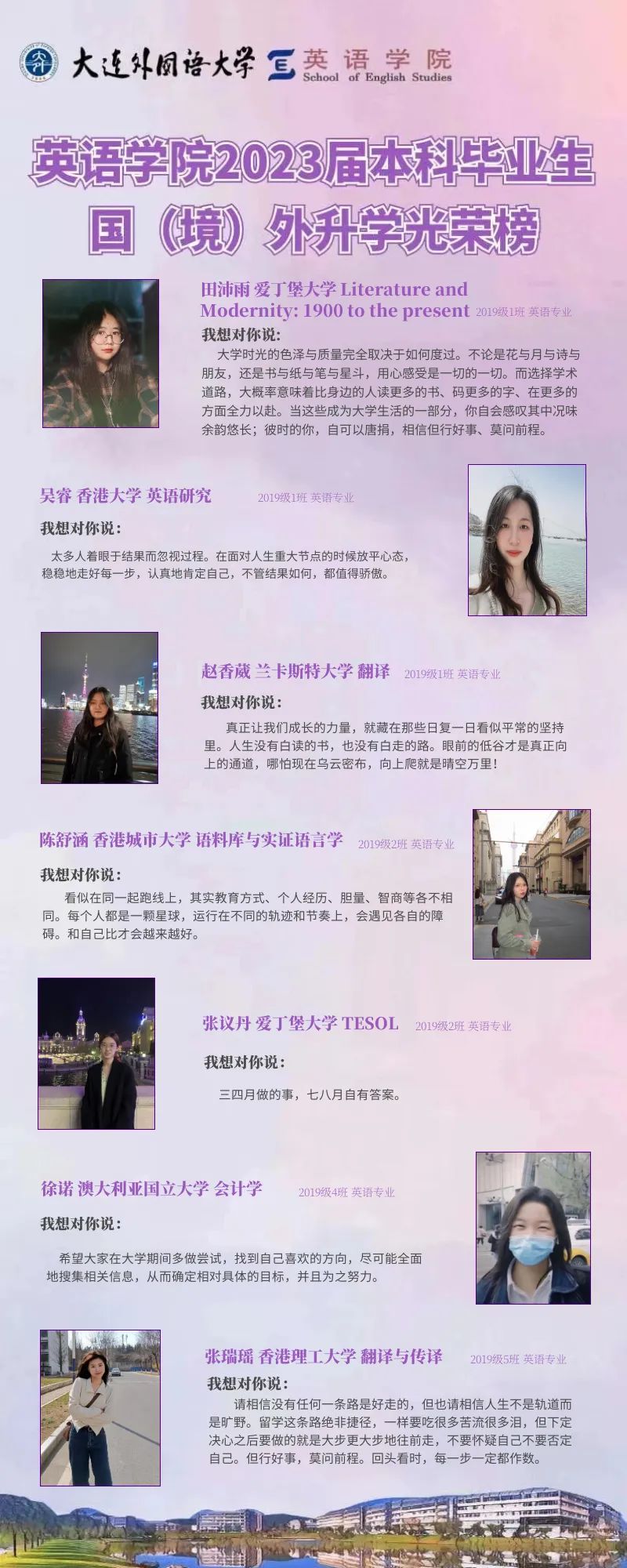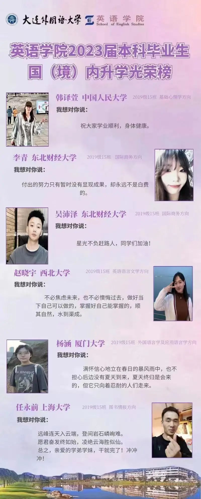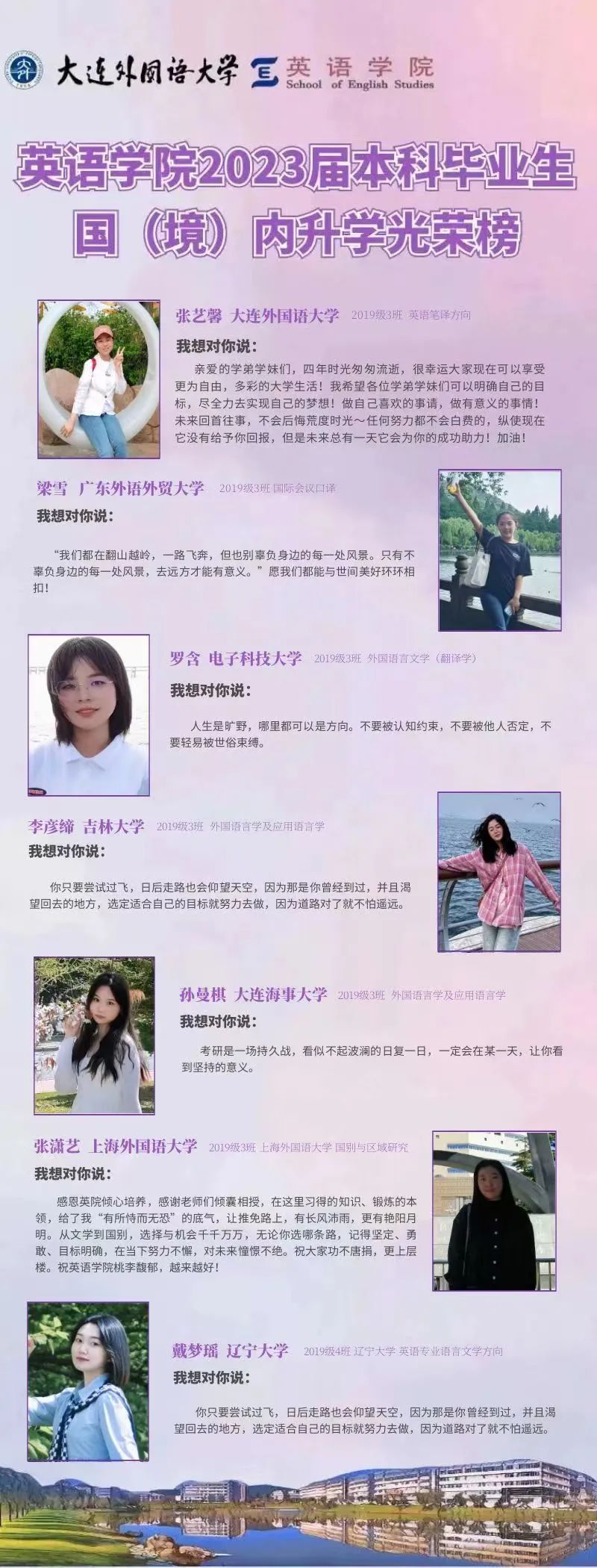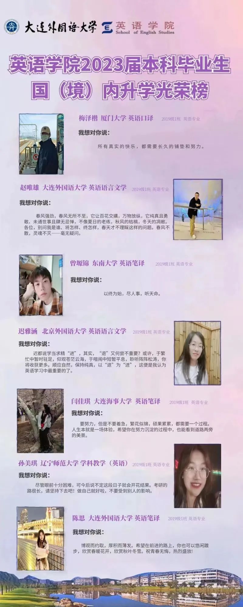 崇德尚文,理想信念肆意飞扬;兼收并蓄,道德智慧闪闪发光。衷心祝愿2023届毕业生学子们能在未来的旅途上坚持终身学习的优良品质,在顺应时代潮流的成才道路上继续披荆棘、破风浪,顺利到达理想的彼岸。与此同时,快猫短视频 的全体师生也将奋楫笃行,在为国家培养富有社会责任感、家国情怀和国际视野的创新型人才道路上驰而不息,持续为国家和社会输送高质量外语人才!
