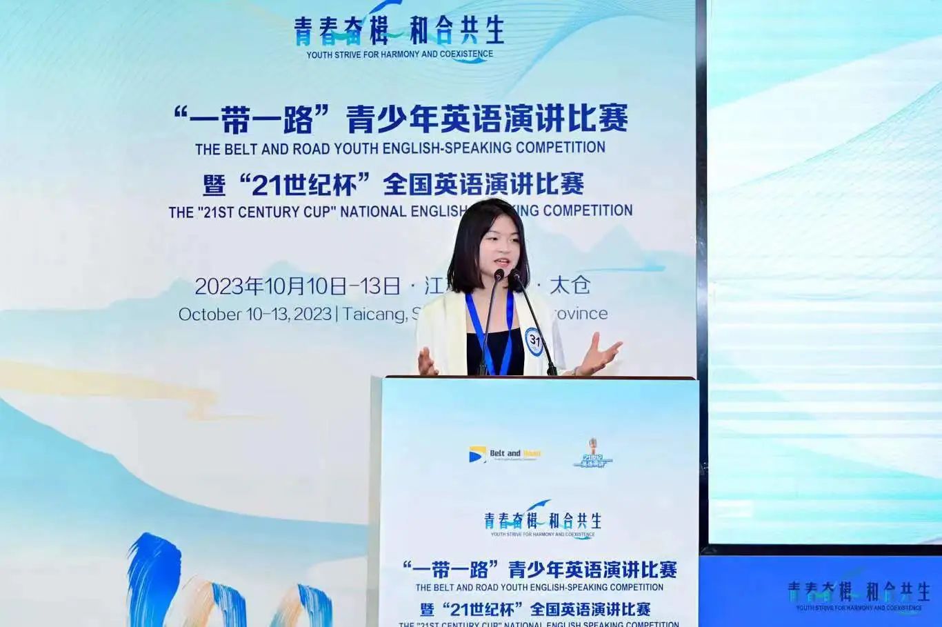 10月13日, “一带一路”青少年英语演讲比赛全球总决赛暨“21世纪杯”全国英语演讲比赛全国总决赛在江苏太仓落下帷幕。我院2020级学生王含章荣获本次总决赛三等奖。