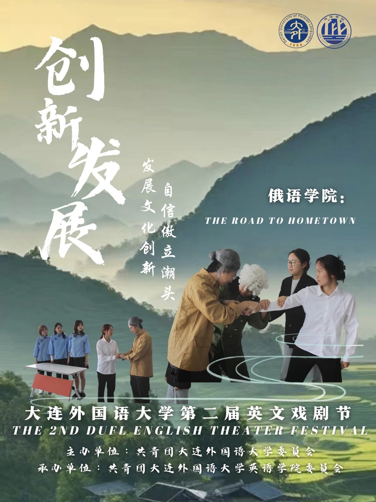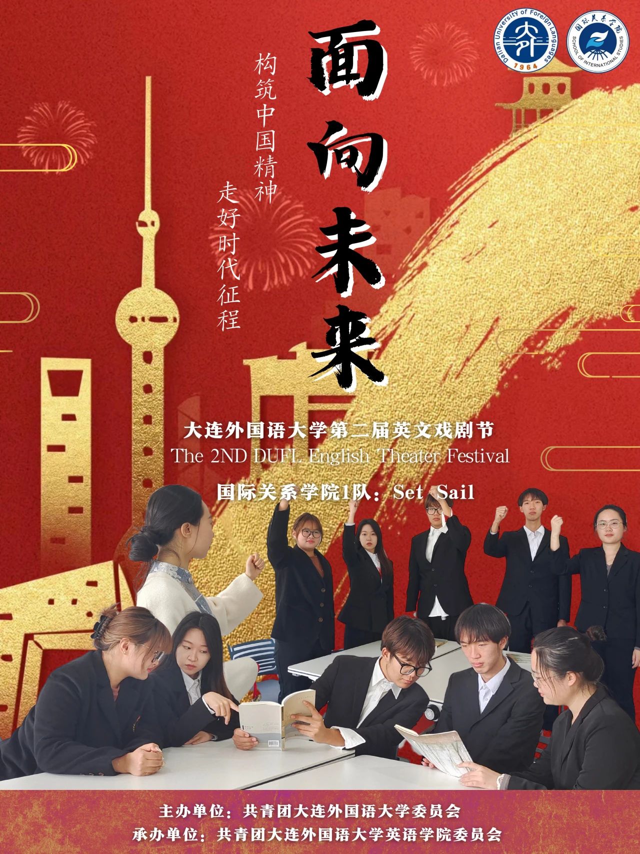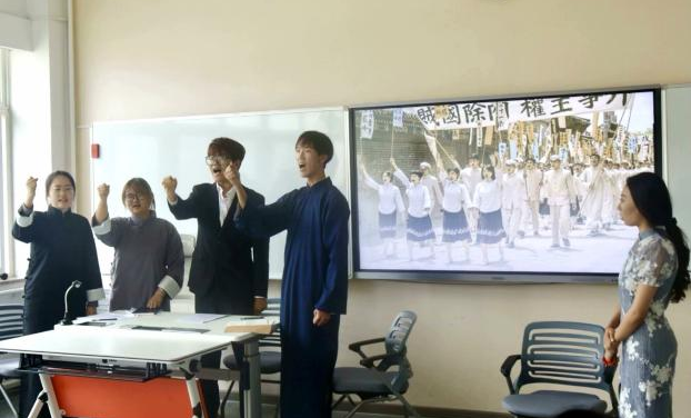 在“创新发展”赛道,来自新闻与传播学院、俄语学院 、韩国语学院和亚非语言学院的四支队伍为我们带来了主题为“发展文化创新,自信傲立潮头”的精彩戏剧表演。