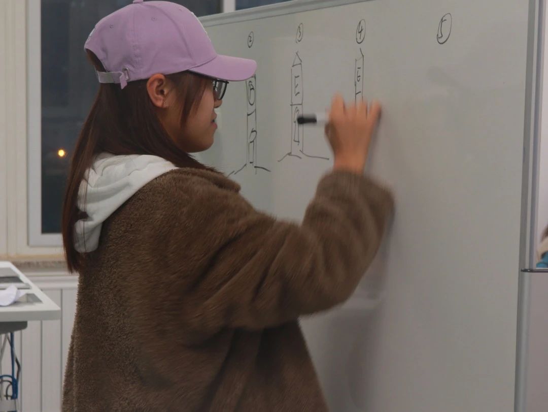 接力版你画我猜更是让现场欢笑不断,每组派出⼗⼈轮流到⽩板处画画,只有第⼀⼈知道名称,其余同学均靠猜来作画。同学们或生动或抽象的图画使得现场气氛一度被点燃,掌声连连。