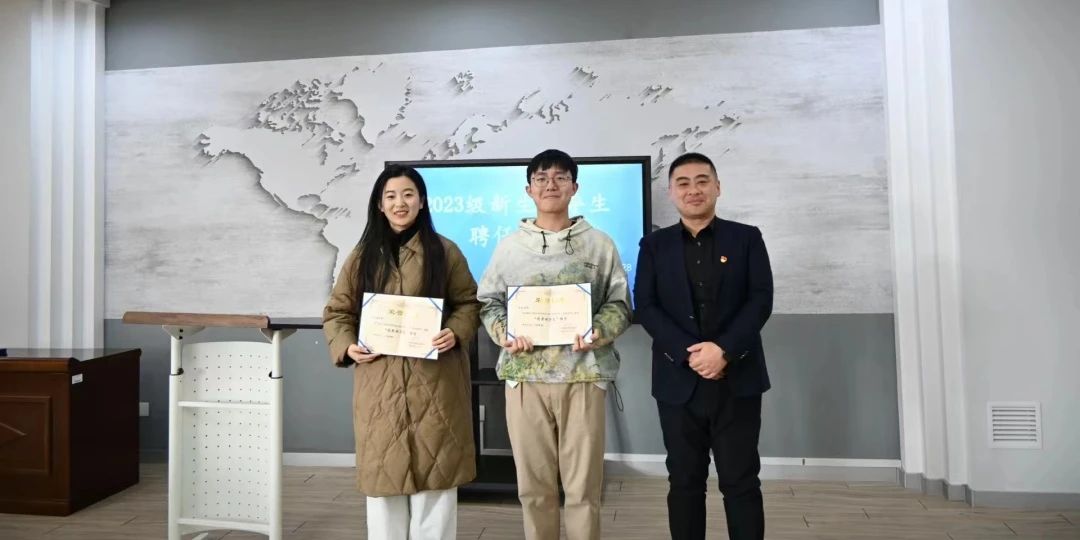 孙书记、曲老师和吴老师分别为新生助理及班导生们颁发聘书,认可他们在过去一学期中的工作表现与工作成绩。随后各班新生代表为班导生送上小礼品,并为他们献上最真挚的祝福。孙书记对2023级新生班导生的工作给予了高度评价,希望班导生们能够继续保持良好的工作态度和工作作风,不断提高自身素质和能力,为同学们提供更好的指导与帮助。在仪式最后,全体参会人员进行了合影留念,记录下这个特殊的时刻。这次聘任仪式不仅是对班导生们工作的肯定,也是对新生们的激励与鼓舞。