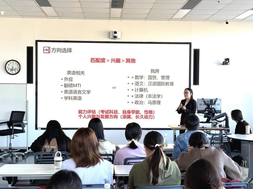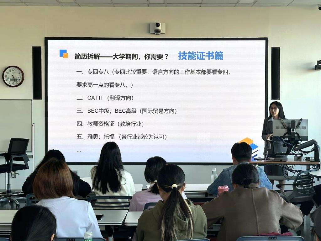 于4月17日在励业楼402教室举办了2024届商务英语就业升学经验分享会。会议由快猫短视频