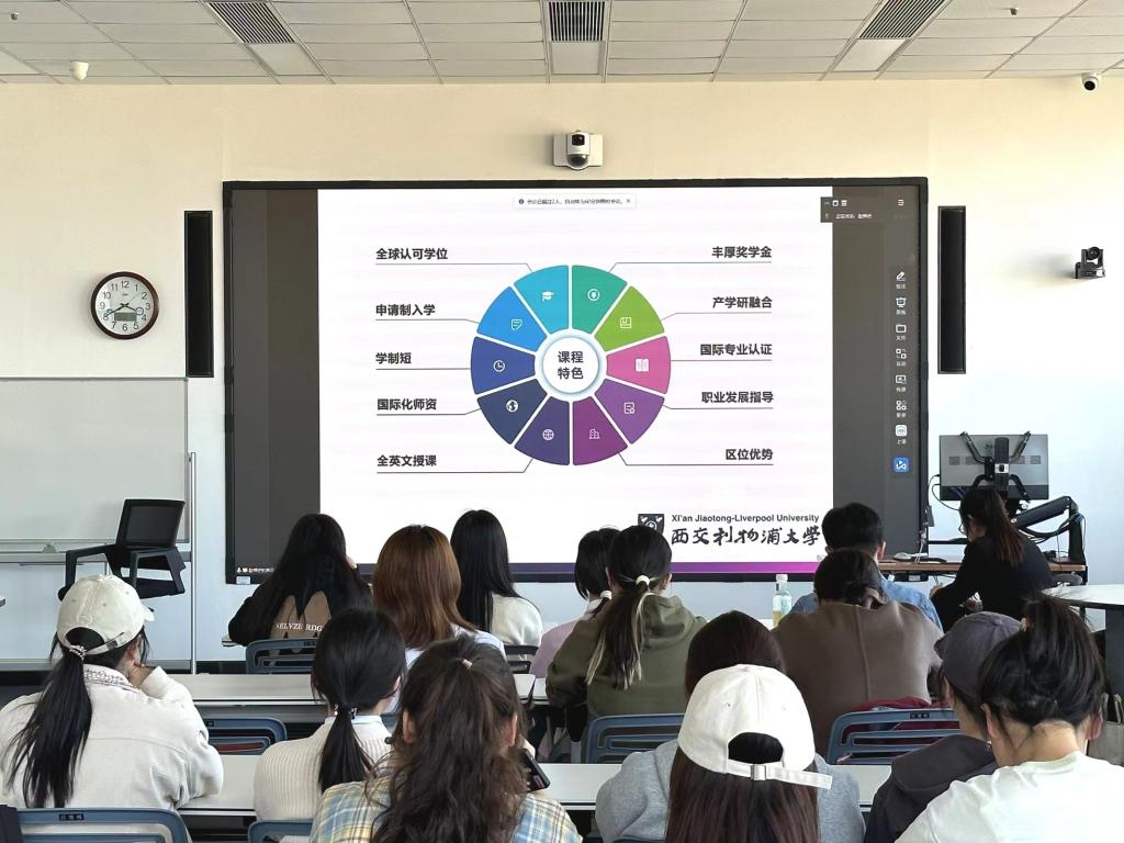 商务英语2023届毕业生赵梓妤同学分享了自己在西交利物浦大学的读研生活,并就学校认可度、毕业生就业情况和申请条件等方面进行全面介绍。她鼓励在座同学不断提升个人的专业素养和学业成绩,积极参与各类学科竞赛,以此丰富自己的学术经历和实践能力,为将来的升学和深造打下坚实基础。