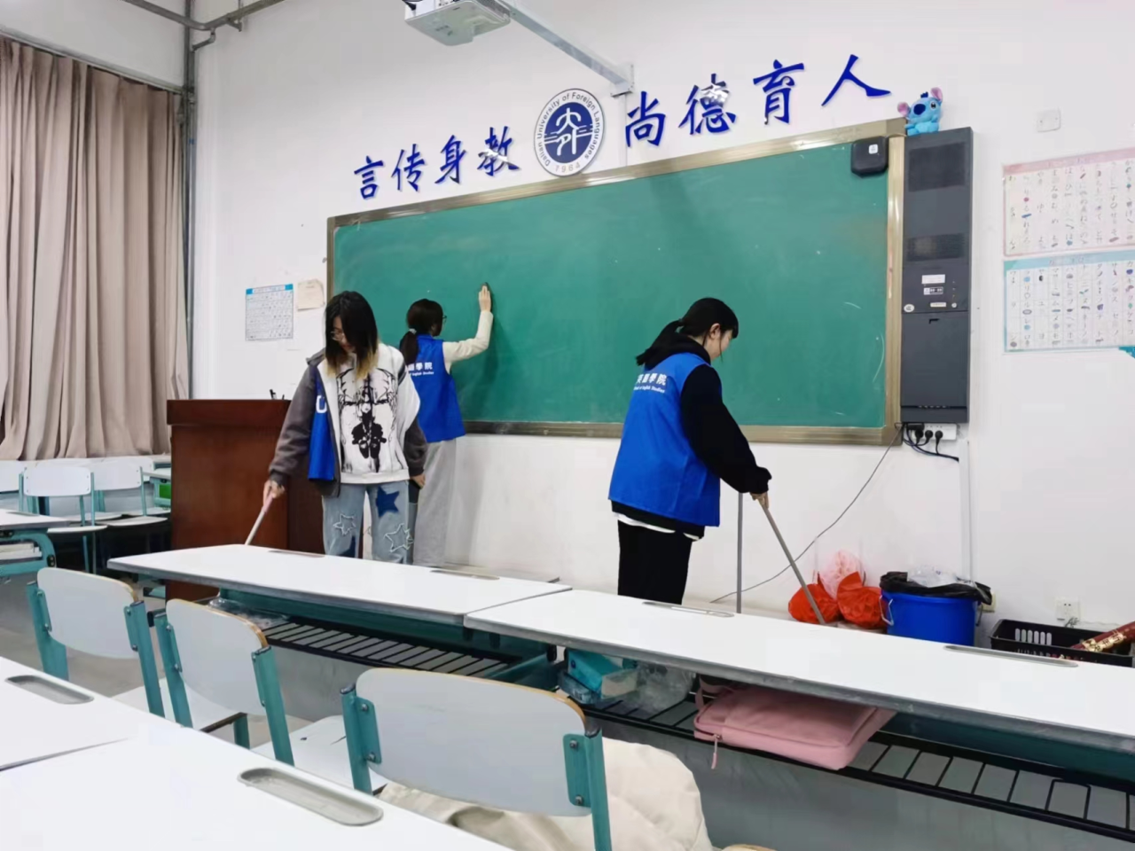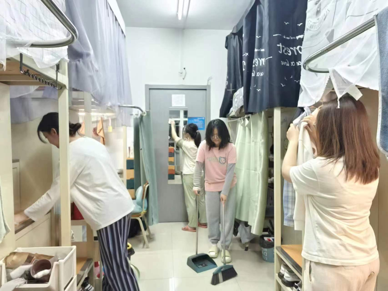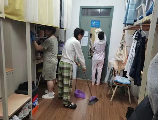高度重视学生的日常生活劳动教育,在活动期间,同学们以高度的责任感对寝室、教室进行了认真细致、全面彻底的清扫。寝室内的每一个角落都焕然一新,床铺整洁有序,书桌干净明亮;教室的地面光洁如镜,黑板和讲台一尘不染,学习和生活环境得到了极大改善。英院学子的辛勤付出是劳动教育成果的最好体现,希望同学们能够将活动期间的所学所得转化为实际行动,并在今后的学习和生活中取得更加优异的成绩。