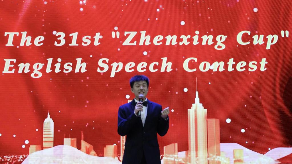 “振兴杯”演讲比赛决赛分为命题演讲和即兴问答两个环节,其中命题演讲主题为“The Chinese Dragon Is Good”。经过班级初赛、年级复赛两轮的激烈角逐,最终12名同学成功入围决赛。决赛场上,各位选手纷纷用精彩的语言讲述“中国龙”的故事,并以开阔的视野和清晰的演讲思路深刻阐释了 “中国龙”的时代价值和世界意义;在提问环节,选手们旁征博引、对答如流,他们从容的态度、昂扬的风采赢得了在场评委与观众经久不息的掌声。
