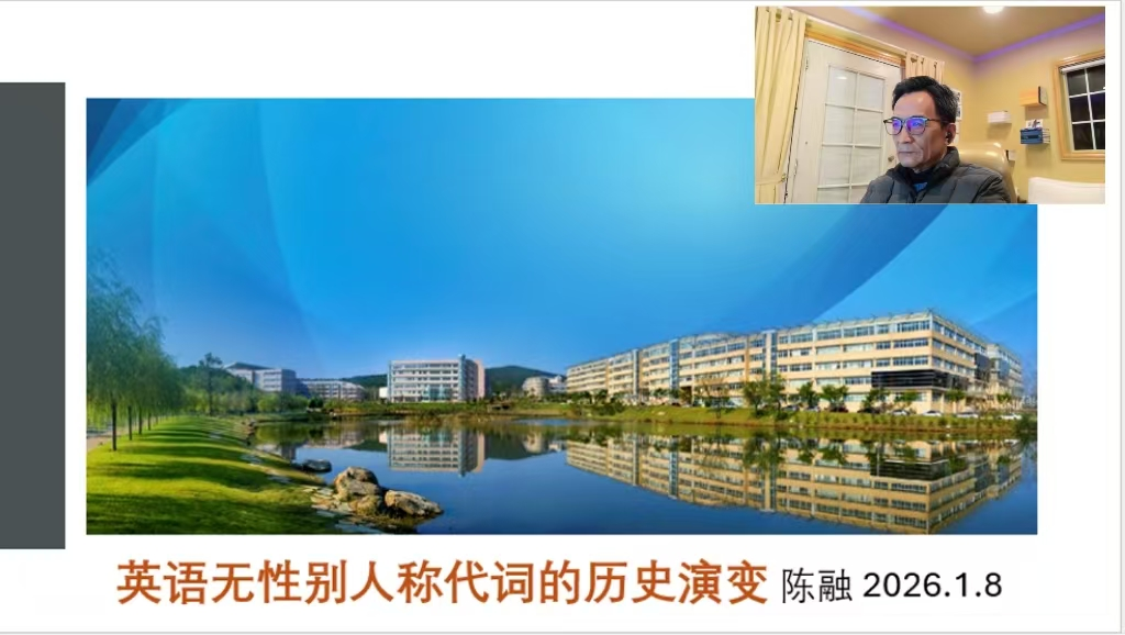 启航学者陈融教授为学院师生做了题为“英语无性别人称代词的历史演变”的学术讲座。本次讲座由语用学团队刘诗宇博士主持,学院部分专任教师及硕士研究生共同参加了此次讲座。