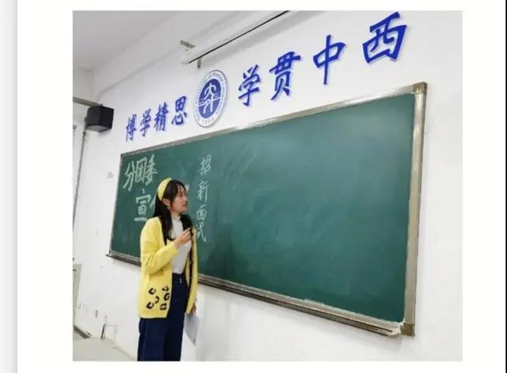 招新现场气氛十分热烈。新生们跃跃欲试,亟待提交手中的报名表;学长学姐们在教室门口热情接待应试者;各部门面试官准备好了相应的面试问题,有序地对有意加入学生组织的新生进行考核。