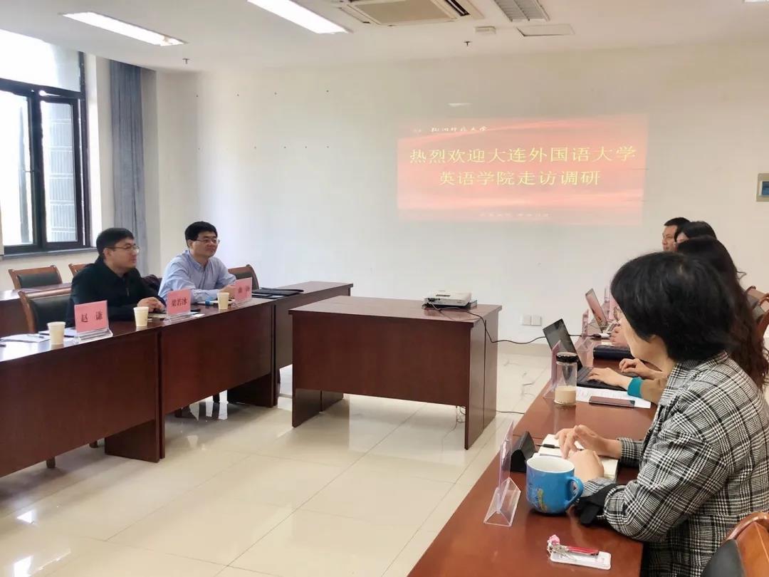 党委副书记梁若冰、副院长曲涛、教学秘书赵谦一行三人赴杭州师范大学外国语学院调研交流。杭师大外院院长欧荣、党委副书记王倩、副院长李颖、学工班主任钱珊、研究生办公室主任李中华和教务科科长陈群阳参加会谈。