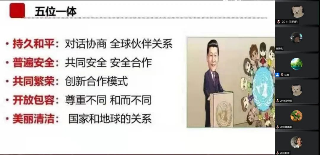 会议尾声,老师与同学们一起分析疫情下的国际形势。正如习近平总书记指出,当前世界大变局加速深刻演变,全球动荡源和风险点增多,我国外部环境复杂严峻。今后,我们将面对更多逆风逆水的外部环境,必须做好应对一系列新的风险挑战的准备。