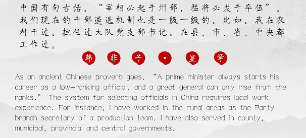 本课程引入了北京第二外国语大学开设的智慧树平台《古代汉语赏析与翻译》课程,该课程以习近平总书记用典为线索,为同学们介绍中国古代汉语典籍,提升其传统文化素养。教学采用语言文化知识与专业技能相结合的方法,结合时政,帮助学员理解典籍引文含义在现代汉语语境下的灵活变化及其翻译手段。课程结束后,学生既能够提升古代汉语阅读能力和文化知识储备,也能够显著提高他们的汉英口译、笔译能力。并且,这门课程将《习近平谈治国理政》里的表述和理念自然地引入课堂,与教学内容无缝衔接,体现了“思政课程”向“课程思政”的转变。