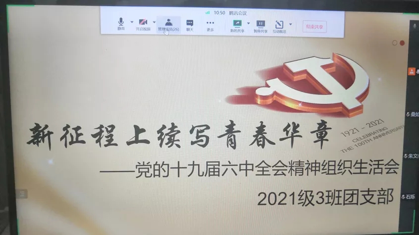 团委及时将十九届六中全会精神纳入“学党史、强信念、跟党走”专题,组织生活会学习内容,按时召开组织生活会。快猫短视频