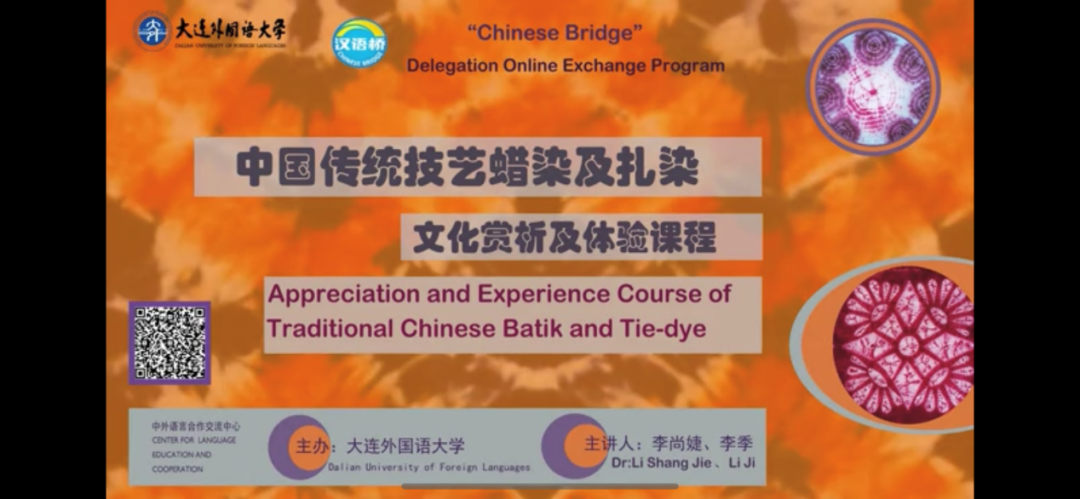 “汉语桥”线上团组交流项目部分课程的字幕翻译工作,在翻译过程中,学会了很多与蜡染和扎染相关的知识,收获了成就感,希望通过翻译可以让民族艺术走向世界舞台!