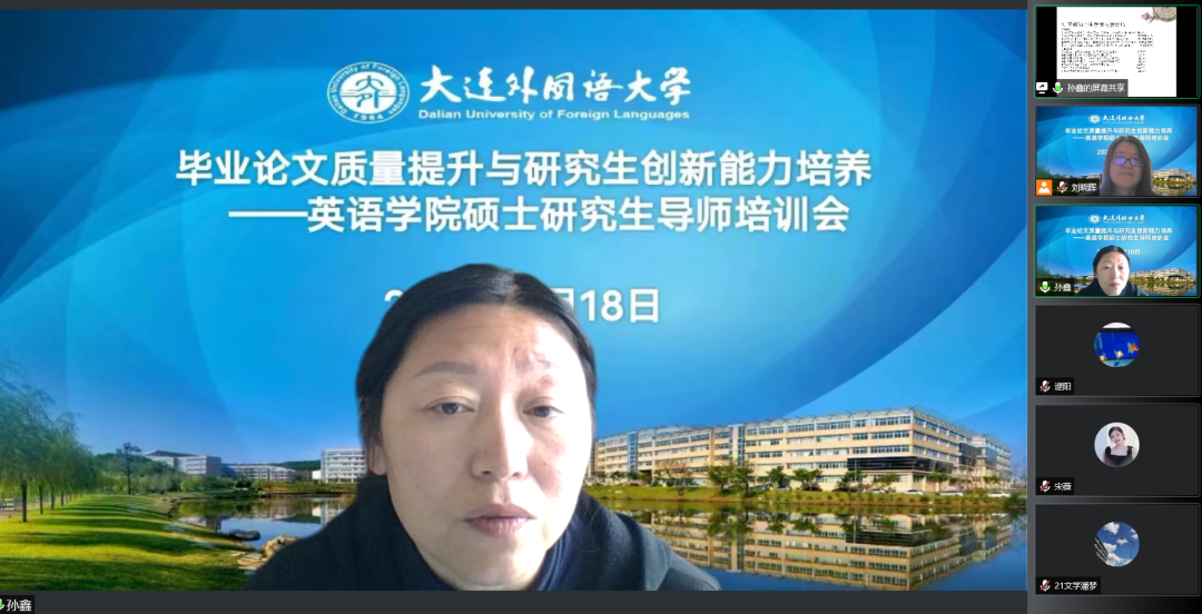 成功举办线上研究生导师培训会。本次培训会的主题是“毕业论文质量提升与研究生创新能力培养”,旨在加强研究生导师队伍建设,强化导师立德树人育人使命,培养高水平创新型学术人才。培训会由两部分构成:第一部分由孙鑫、李文萍、李雪梅三位导师代表进行经验交流,第二部分围绕会议主题进行分组讨论。培训会由快猫短视频