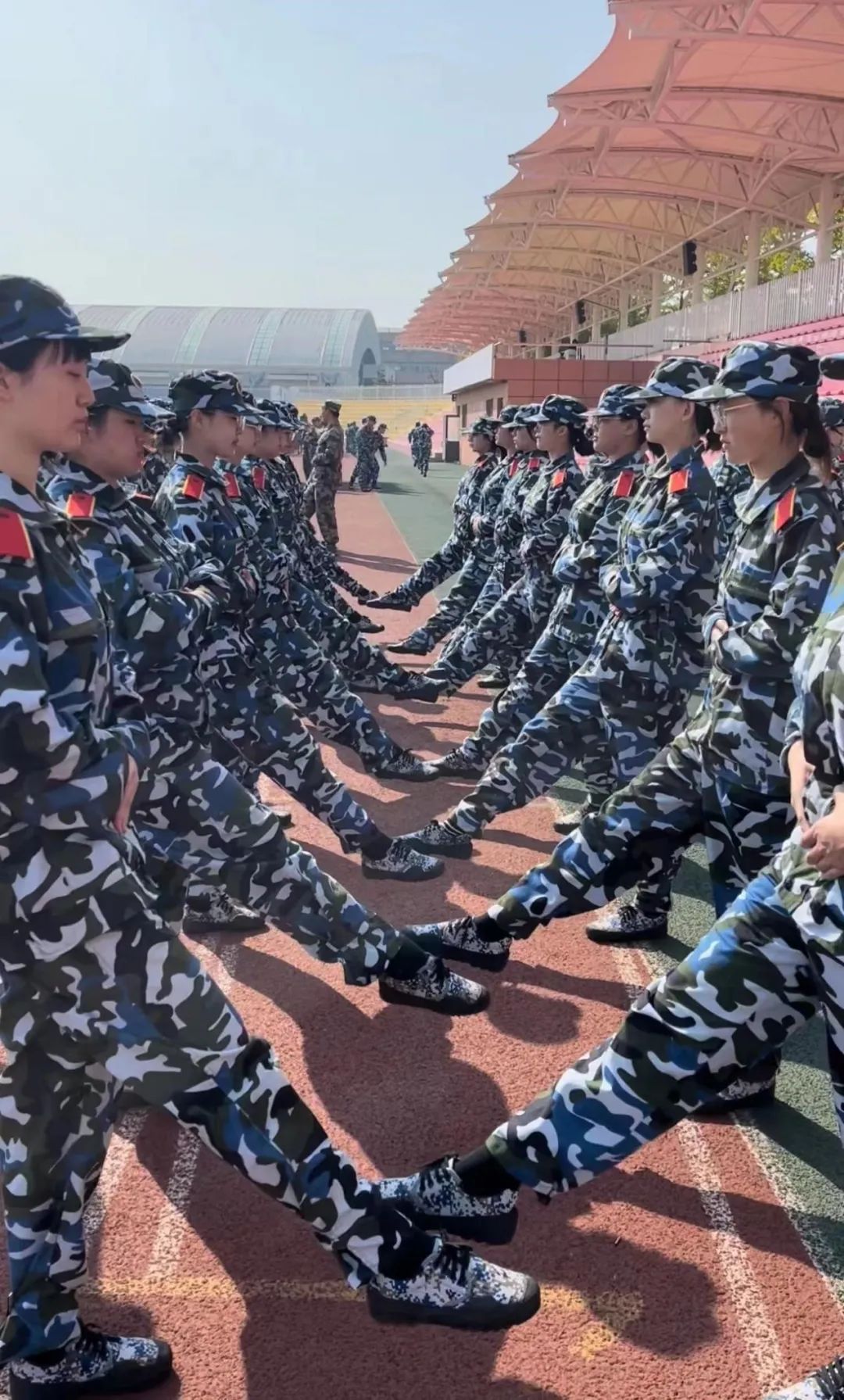 “排头步伐小点!后面的人韧带都快拉伤了!”