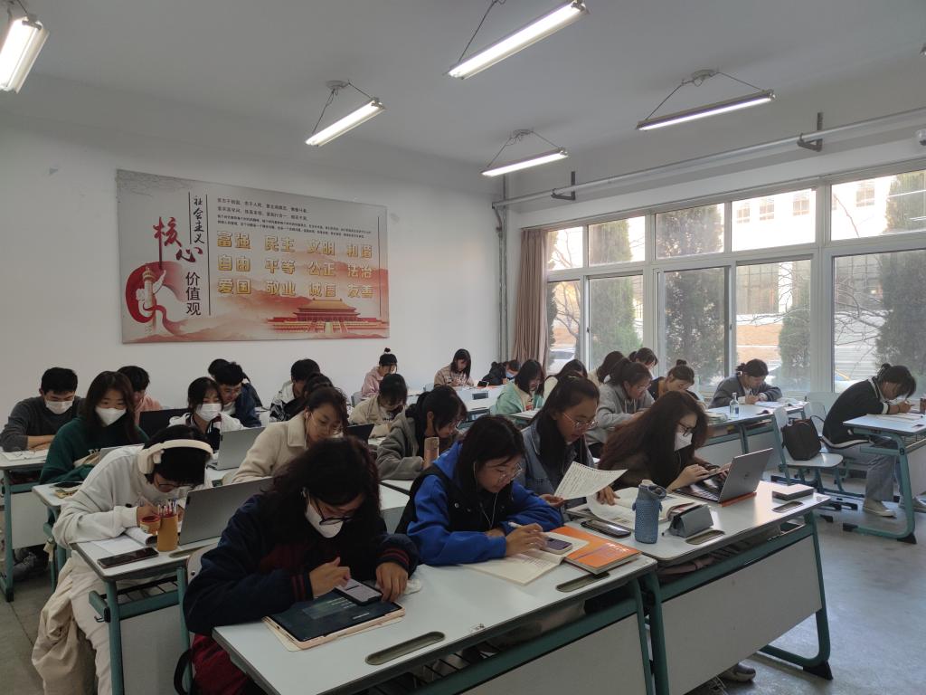为了更好地保证新生晨读活动的效果和质量,学院为22级新生每班配备一名研究生助教,负责组织班内同学晨读秩序和答疑解惑。在遇到学习方面的困难时,同学们会及时、认真地向研究生助教请教,以此改正不足、提升自我,促进听、说、读、写能力的多方面发展。