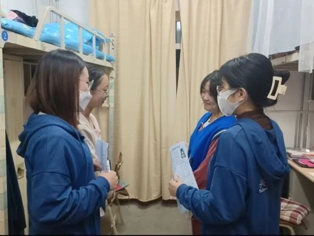 班导生分别走访了书香苑3号楼与5号楼寝室,与新生同学们进行深入的沟通交流,知悉学生学习情况及宿舍生活,耐心倾听同学们的困惑,并以自身经验为同学们纾困解难、提供引导。走访过程中,各班导生与同学们相处融洽,气氛轻松愉快。在知心学长学姐的积极鼓励下,新生们放下了心中的忧虑,紧张的情绪也得到缓解。