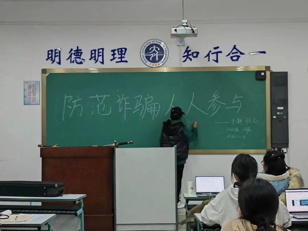 2022级各班于11月8日组织召开了“积极防诈,你我同行”主题班会,向同学们系统讲解了防诈骗相关知识。