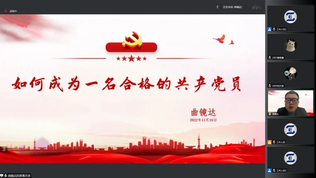 本科生第一党支部书记曲镜达就“如何成为一名合格的共产党员”这一话题与同学们展开了深入探讨