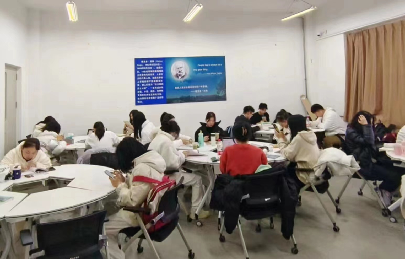在学院的持续推进以及同学们的积极参与下,活动正在有条不紊地进行。沐浴着清晨的日光,英院学子踏进教室,认真晨读,开启充实的的一天。同学们通常会在早自习的过程中朗诵英文读物,在朗读的过程中不仅可以培养语感,提升自己的英语口语,还能丰富英语方面的相关知识,加深对相关文化的了解程度。同时,学院还为各班配备了一名研究生助教,在晨读的过程中辅导同学们学习,为同学们答疑解惑。助教们会根据同学们的口语水平给不同的同学提出针对性的指导意见,便于同学们提升自我。