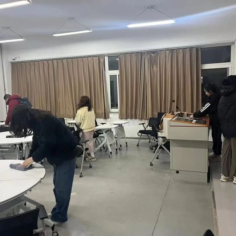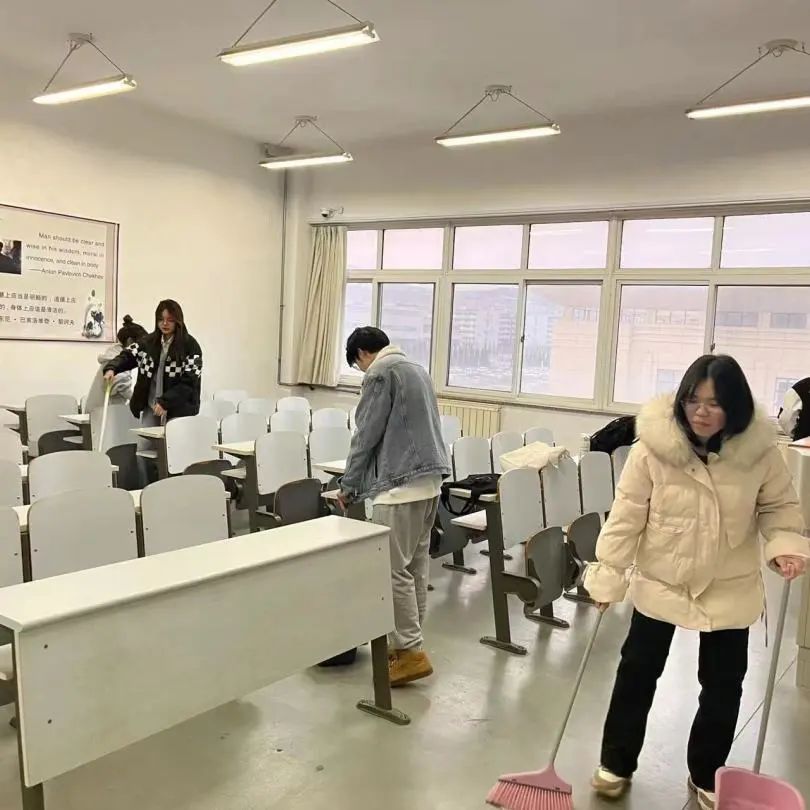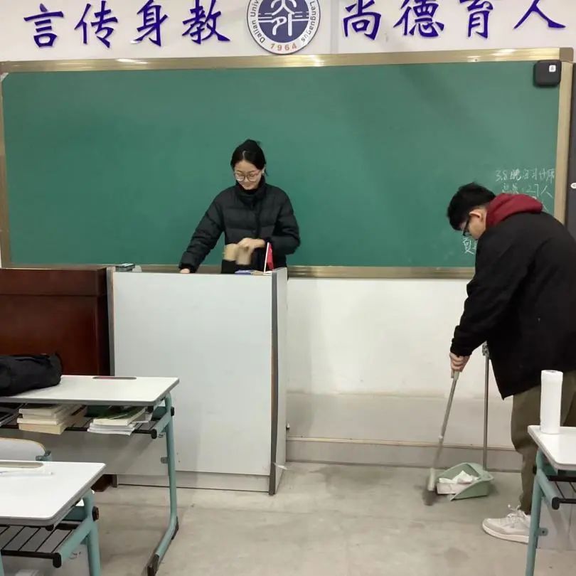 经过同学们的辛勤劳动之后,教室的面貌焕然一新。整齐摆放的教具、规整排列的桌椅、干净整洁的地面,充分地展现出英院学子一丝不苟的工作态度、昂扬向上的精神面貌以及服务同学的奉献精神,真正将雷锋精神落实到实处,坚定地践行雷锋同志服务集体、乐于助人的高尚精神。通过本次劳动活动,同学们不仅深切感受到了雷锋精神的无穷魅力,同时也在践行雷锋精神中强化了为班级服务、奉献自我的责任意识。