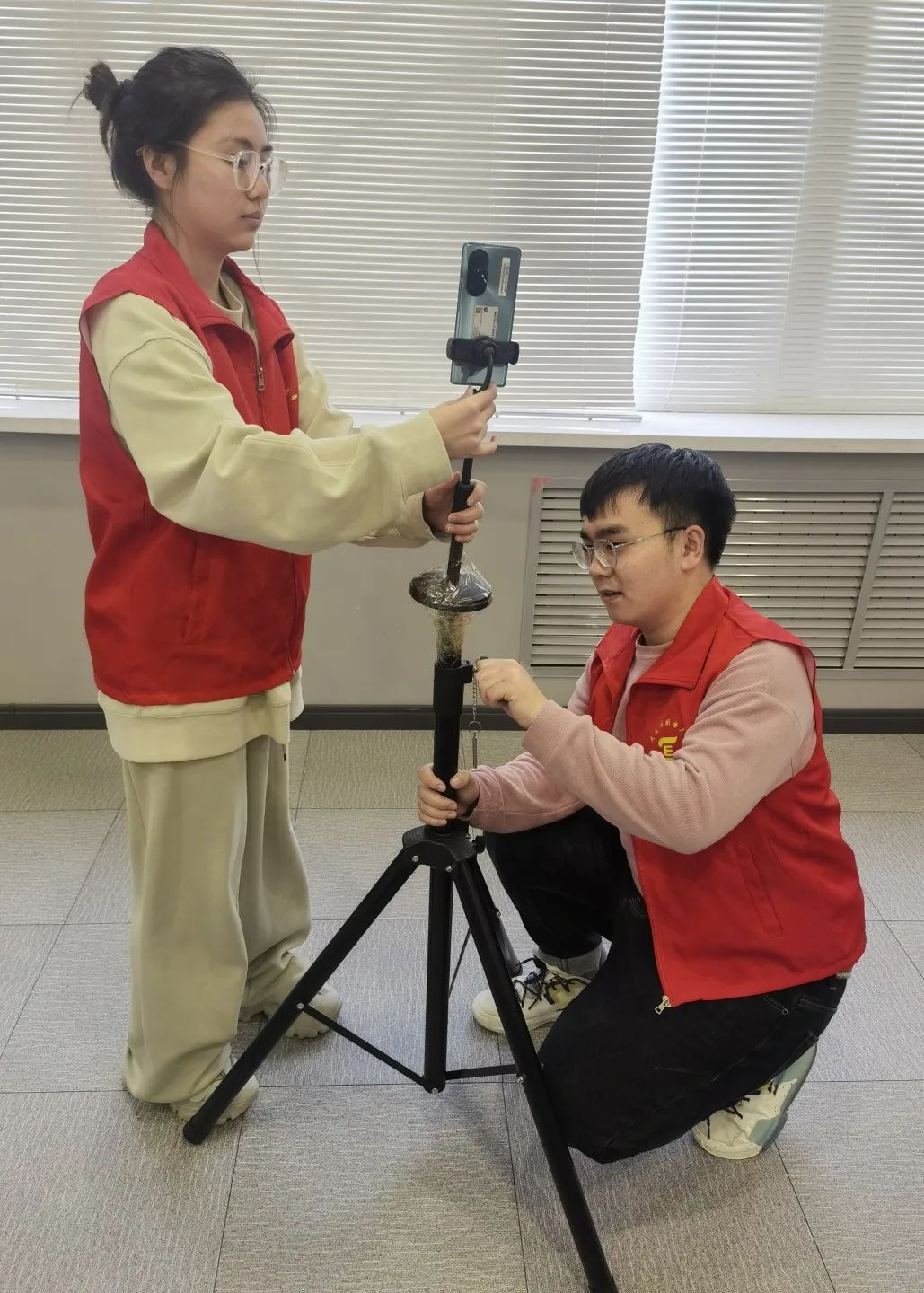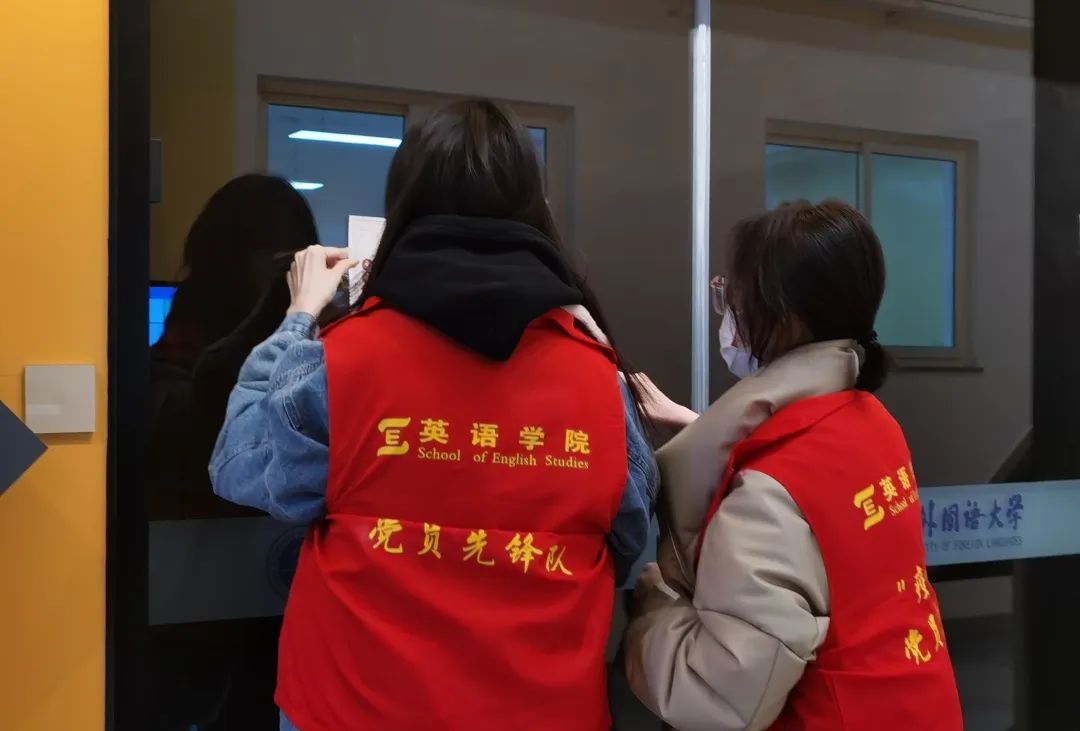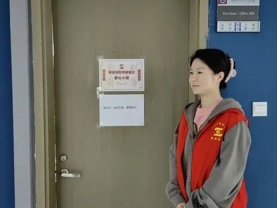 党员先锋队前期统筹调度,为参加复试的学子们设置机位和三脚架,调试好相关设备,并为“爱心小屋”设计了门贴,确保每位同学都能拥有独立空间。在考研学子进行复试时,先锋队党员们在现场进行巡视,确保同学的复试进程不被打扰和避免意外情况的发生,助力考研学子顺利上岸。