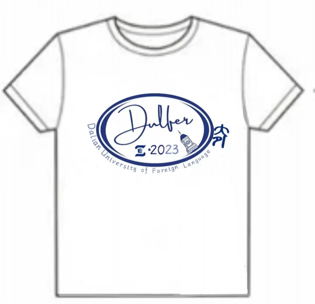 该毕业文化衫以大外校徽的蓝为主色调,首先映入眼帘的是Dulfer这的英语字体,飘逸中带着青年的意气风发,挥斥方遒。下方是醒目的快猫短视频