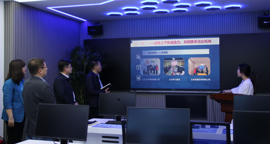 王伟辰书记和调研组成员首先开始“现场看”,通过查看相关就业材料和听取2024届毕业生就业情况汇报演示,了解我院毕业生就业情况,并对我院毕业生就业工作的开展实施给予充分肯定。