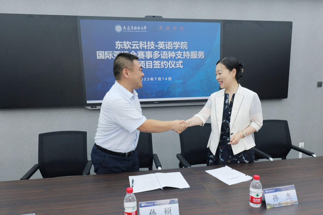 本次会议议程共分为三部分。首先进行的是国际亚运会赛事多语种支持服务志愿项目签约仪式,孙杰副总裁与孙硕书记完成签约。而后进入校企合作课程共建讨论环节。双方通过对校企合作课程的开设、作用与意义的深入探讨,在保障校企合作课程进行中,兼顾学生的学业课程,为学生打造更好的学习条件,提升综合素质以便于应对未来的就业趋势。