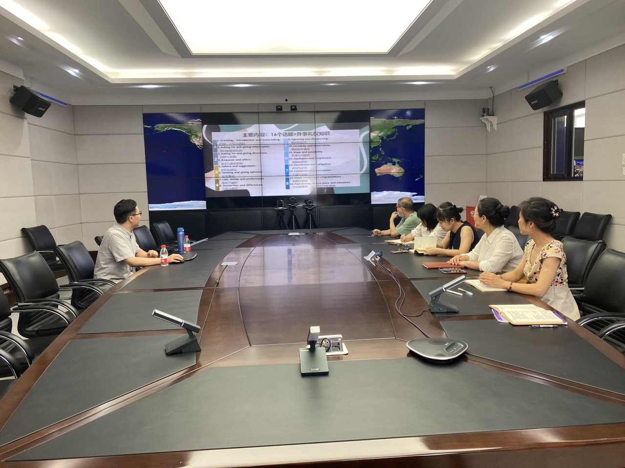 我于2023年7月至9月在大连市教育局进行了以2024国际足球青年赛为背景、旨在提高员工英语表达水平与外事礼仪的培训教学实习。期间我以学院初级教材《新英语口语教程1》为主要内容进行精心编排,在8周多的时间里每周就2个日常交流话题与外事礼仪知识等进行具有针对性的现场教学。在课余时间,我通过培训群向学员们提供自制的课堂内容详解课件与语音纠正的练习音频,以巩固课堂教学效果和提高学员的英语交际水平。