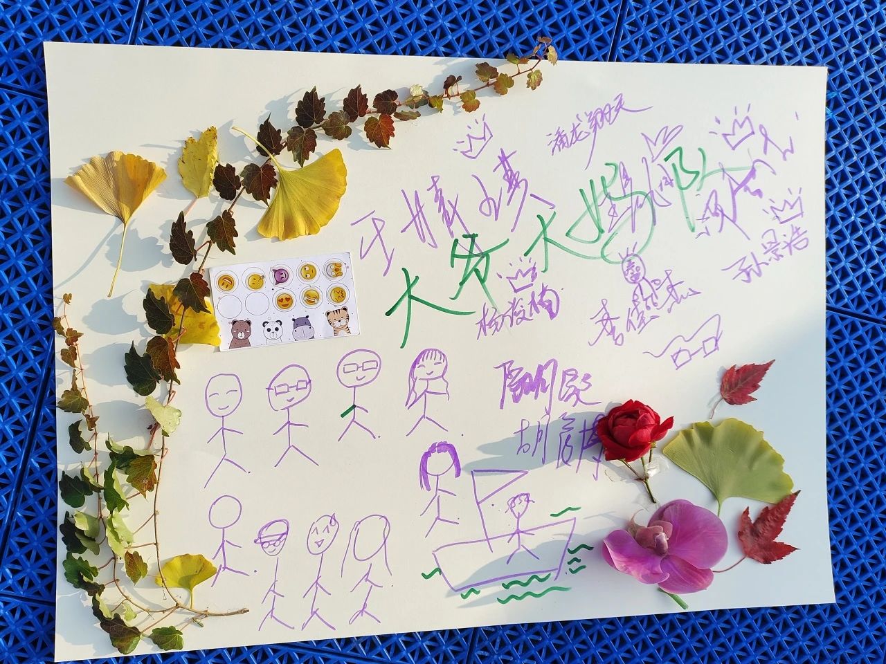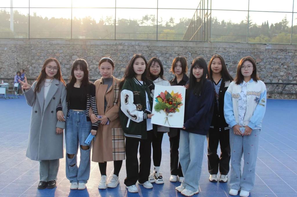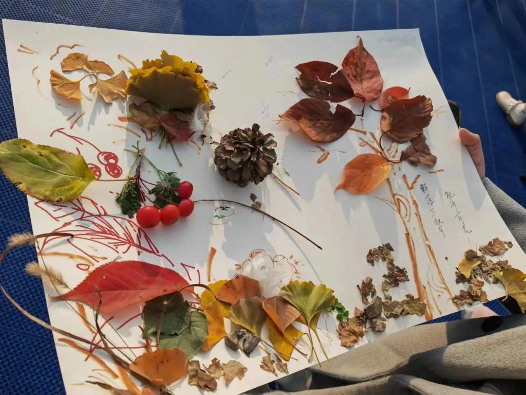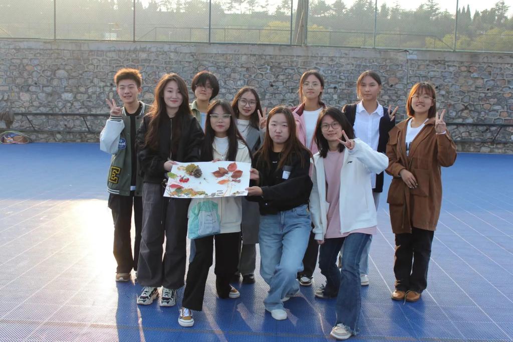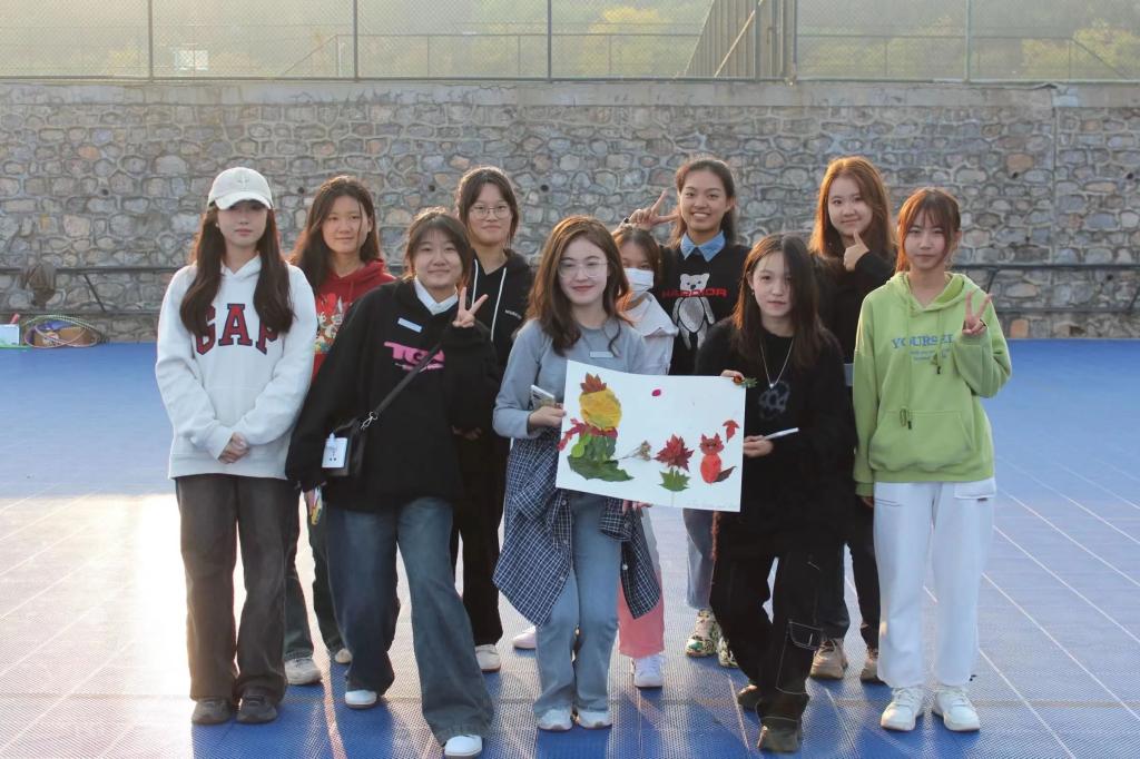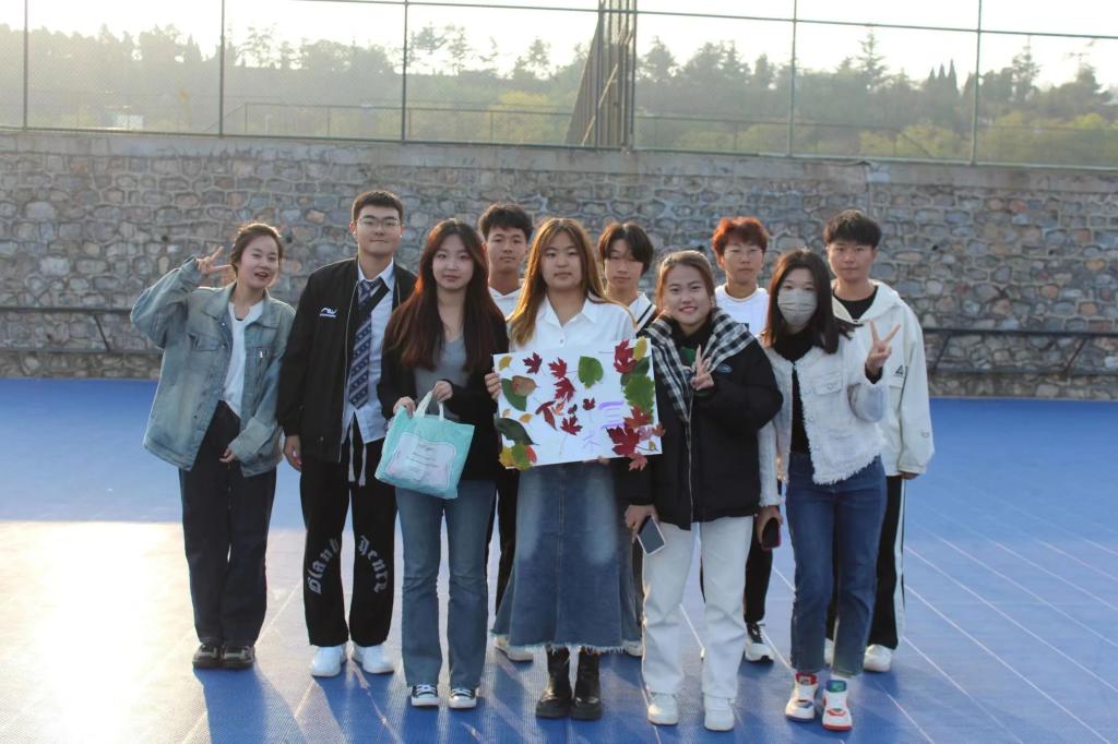 每一项游戏都充分调动了同学们的兴趣,让大家在和谐的氛围中增进感情,在愉快的活动中培养默契。游戏结束后,同学们回到轮滑场,在主持人的组织下领取材料,使用活动中收集的素材进行拼贴画创作,并进行投票评选出大家最心仪的作品。路边飘落的木叶、枝头绽放的秋蕊,都被同学们装入画中,一幅幅精美的拼贴画凝聚着英院学子的协作与付出。整个过程同学们热情洋溢,积极参与,场面热闹非凡。