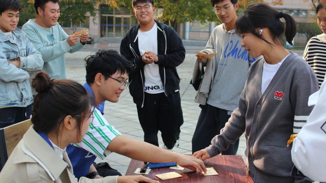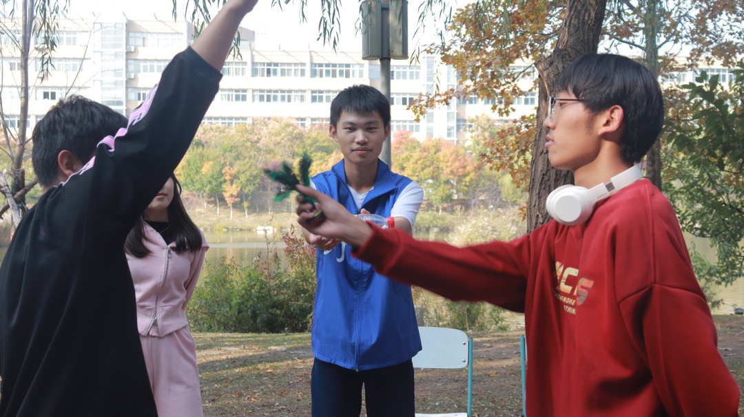 活动正式开始前,同学们被随机分为15组,各组同学想好队名后由组长抽取号码顺序,随后前往校园各个集章点进行游戏打卡。本次素拓共有“月球行走”“秋之诗韵”“月兔拔萝”“定格拍照”“我是雕塑”“花开花落”等十五个游戏。
