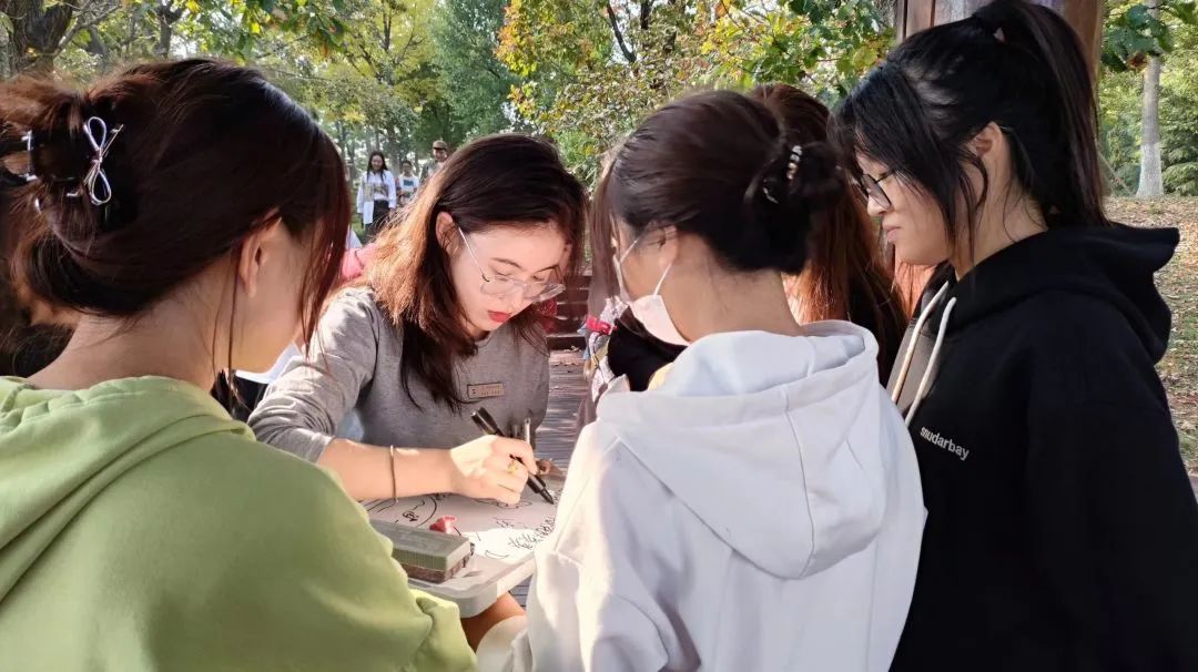 “秋之诗韵”活动考验同学们的诗词积累与艺术巧思,每组需要联想或创作三句与秋天和知行亭附近事物相关的诗词,并附上与之相关的画作即可完成。各个团队的同学们集思广益,齐心协力,努力为自己所在的集体作出贡献。