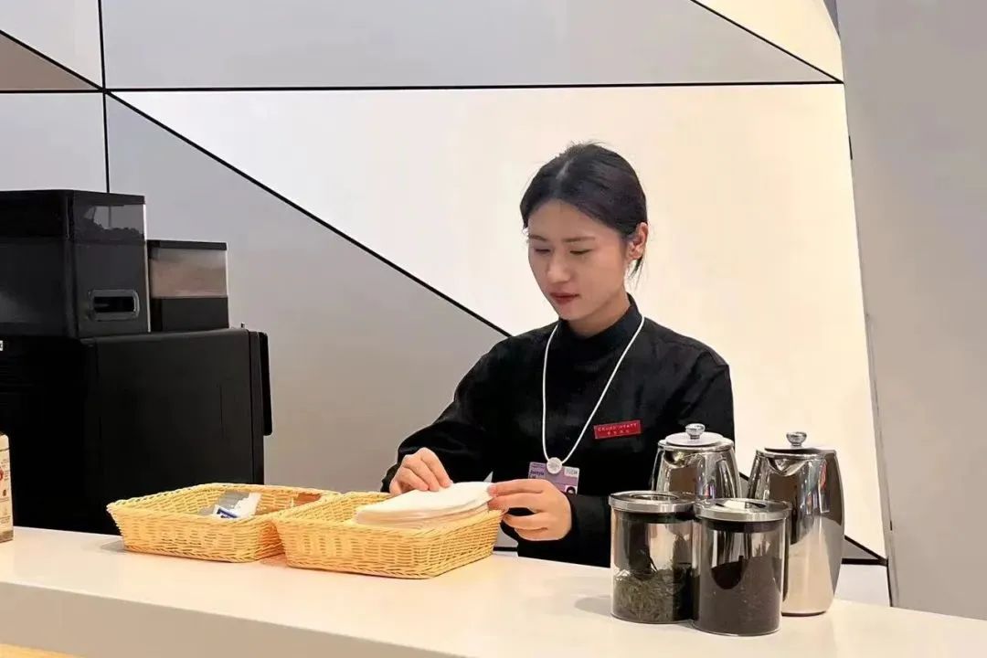 英院君悦酒店志愿者专注于为参会者提供高质量的后勤保障服务,确保参会者在整个活动期间保持舒适、专注参会。志愿者们通过提供及时、周到的餐饮服务,增强与会者的体验,展示达沃斯论坛的专业形象。