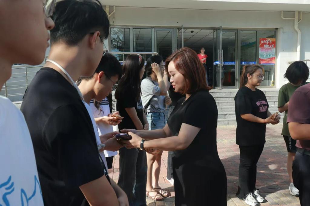 随后,各位领导老师启程前往书香园3号楼,对2023级在校学生代表进行亲切慰问,并为他们发放大外特制的纪念月饼。希望这枚充满心意的月饼能够为宿舍平添一抹节日的喜庆,宽解各位同学的思乡之情,让大家感受到快猫短视频