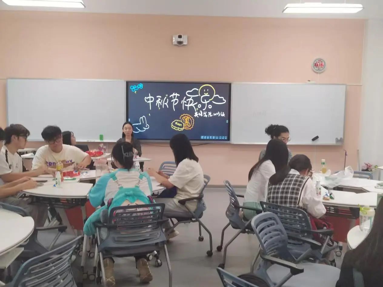 2023级本科生于励业楼举办了“月满中秋,情聚英院”主题晚会。在晚会中,“猜灯谜”“中秋知识竞答”等一系列游戏环节和各种精美的小礼品极大地激发了同学们的热情,不仅让大家在轻松愉快的氛围中学习到了更多关于中秋节的知识,也增进了同学之间的交流与了解。