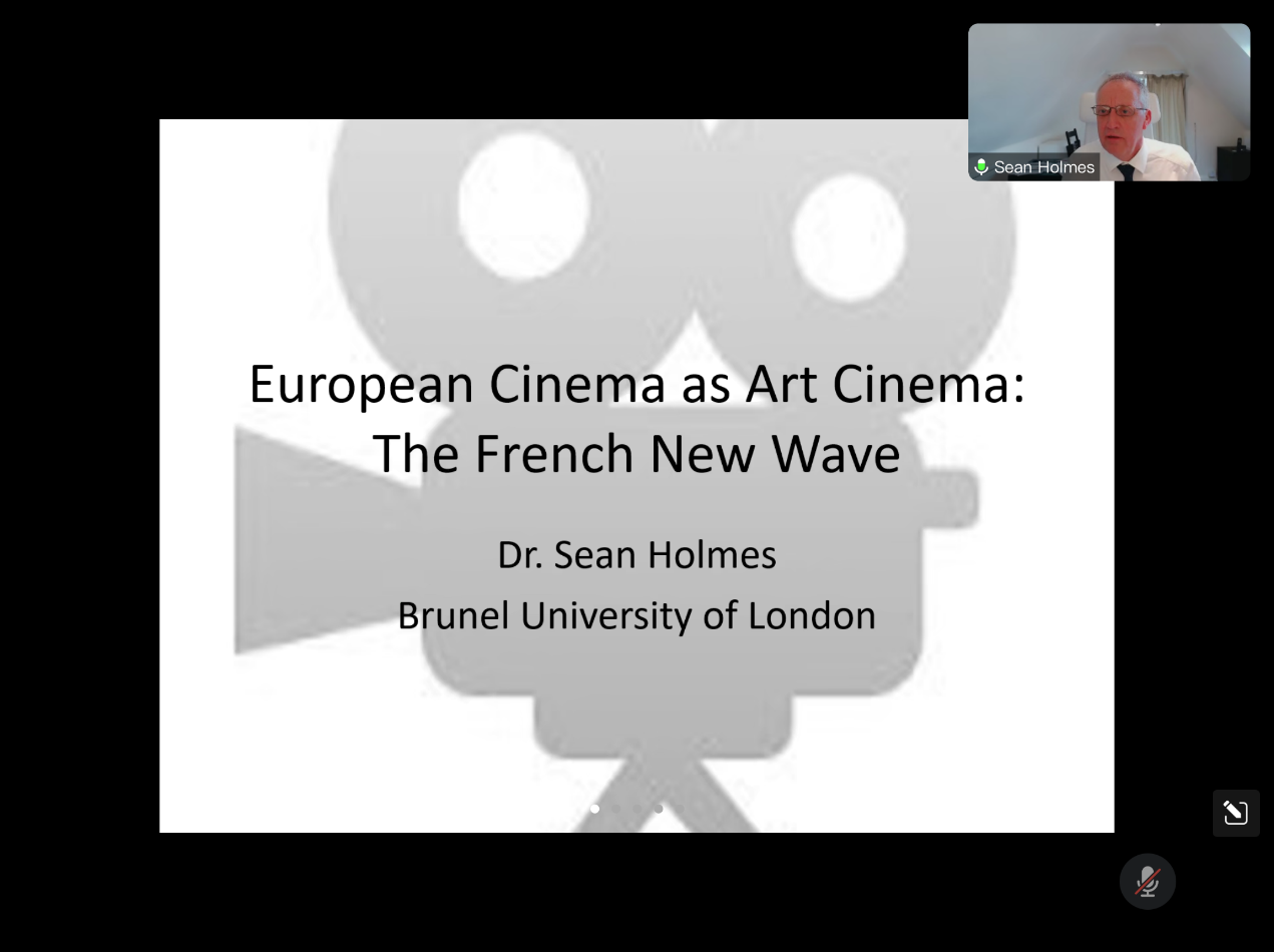 “国际教育交流月”工作部署,加强国际化课程建设与人才培养,扩展学生国际视野,10月18日,英国布鲁内尔大学肖恩·霍姆斯博士(Sean Holmes)应邀为我院师生做了题为“作为艺术电影的欧洲电影:法国新浪潮”的线上学术讲座。本次讲座是学院“国际教育交流月”系列活动之一,由国际交流外事秘书黄新智主持,部分本科生参加了此次讲座。
