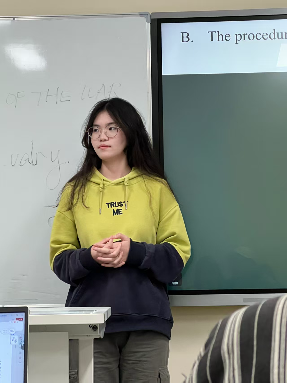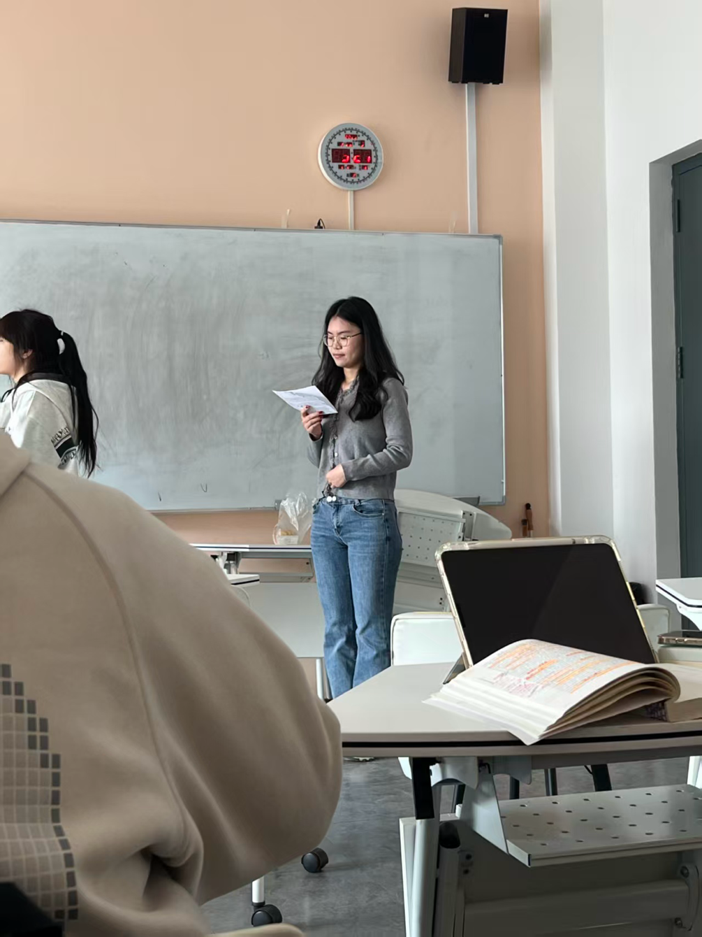 最后,刘琛也向学弟学妹们分享了自己的语言学习经验。她希望大家始终保持对语言的热爱,用心去感受语言本身的魅力。“语言是一座桥梁,能帮助我们打开另一个世界。”她鼓励大家大胆开口、勇敢表达。最后,她也寄语学弟学妹:在诵读中不断提升自我,不仅能练就扎实的专业本领,更能收获自信、勇气,以及一群志同道合的伙伴。她也衷心祝愿经典诵读俱乐部越来越好,永远在书香里温暖前行。