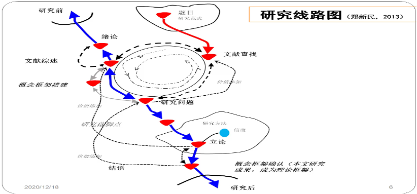 本次讲座围绕选题步骤、选题原则、选题过程以及如何撰写选题任务书等方面进行了探讨。郑教授首先阐述了研究的概念,认为研究应由研究问题、数据和诠释三部分组成。随后,郑教授结合研究线路图对研究的步骤进行了详细地讲解,具体包括文献回顾、研究设计、资料收集、数据分析、探讨阐释等方面。郑教授尤其强调文献综述的重要性,认为基于数据库资源的文献查找、理论发展轨迹的梳理以及对比相关研究的过程有助于重新认识研究问题,从而实现价值添加的目的。最后,郑教授建议不要盲目照搬理论框架,而应该根据研究问题的属性和潜在因素进行预判,做出适当的调整和补充,尝试性地搭建自己的概念框架。