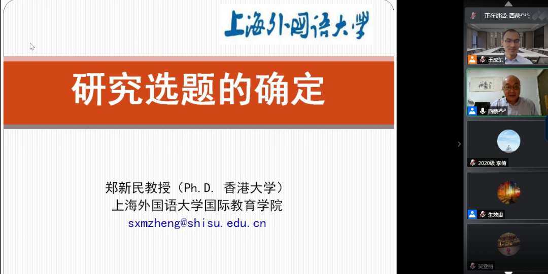 邀请,通过腾讯会议平台为我院师生做了题为“叠叶与高节,俱从毫末生——谈研究选题的确定”的学术讲座。本次讲座为我院外语教育系列讲座之一,由王成东副院长主持,我院部分教师和硕士研究生共同聆听了此次讲座。