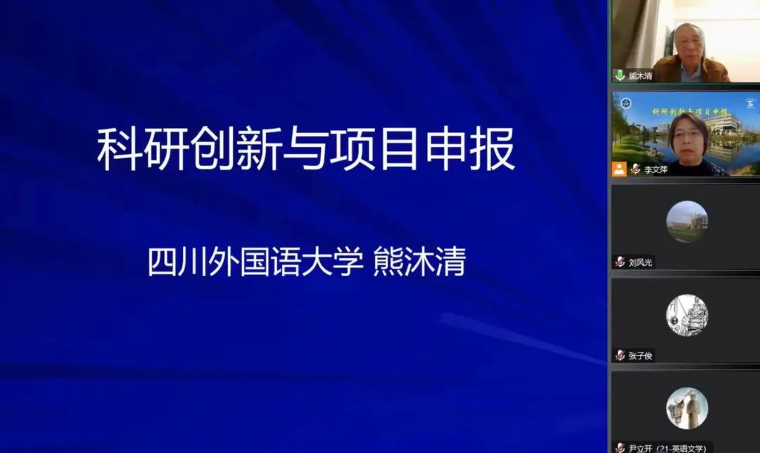 邀请,通过腾讯会议平台为我院师生做了题为“科研创新与项目申报”的学术讲座。本次讲座为我院“外语学科融合发展”高端云讲坛系列讲座之一,由快猫短视频