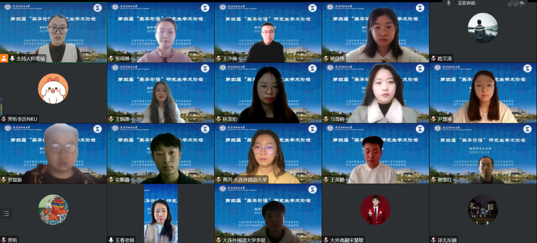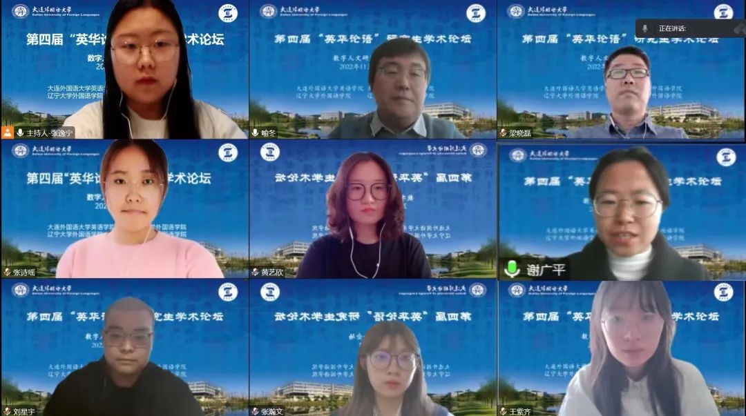 、大连海事大学外国语学院、辽宁大学外国语学院、辽宁师范大学外国语学院联合举办,旨在为研究生搭建高质量学术交流平台,紧跟国家战略,响应时代需求,突出思想性、科学性、交叉性与创新性,着力培养高层次创新型青年人才,为建设社会主义现代化强国提供有力的人才支撑。本次论坛采用线上模式进行,下设理论语言学研究、翻译研究、政治文本翻译研究、英美文学研究、数字人文研究、外语教学研究六个分论坛。